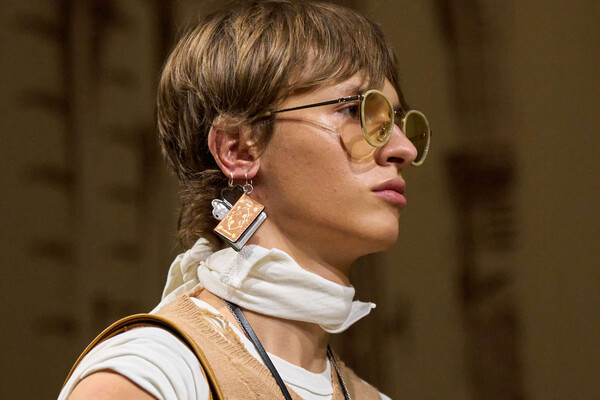 Vevers delivered exactly that: worn-in leathers that looked like they’d lived ten lives, patchwork check tailoring that would make a lumberjack cry chic tears, and workwear pants so roughed up they could have been rescued from a factory floor.