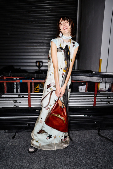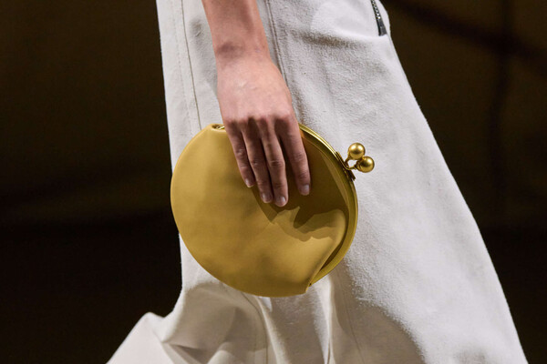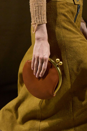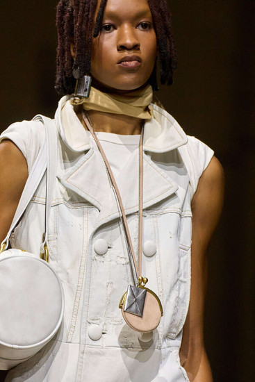 And then, the bags. Always the bags. This season, a cylindrical duffel dubbed the Kisslock was designed to nestle under the arm, alongside a hobo-shaped bag with a purse clasp Coach DNA, but rewritten. Vevers stripped the traditional bag charms and instead wrapped his pendants around necks.