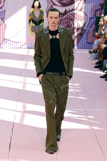 Denim was elevated through heavy topstitching, and some collars sparkled with Swarovski crystals, because why not make your jeans capable of blinding someone across the street?
