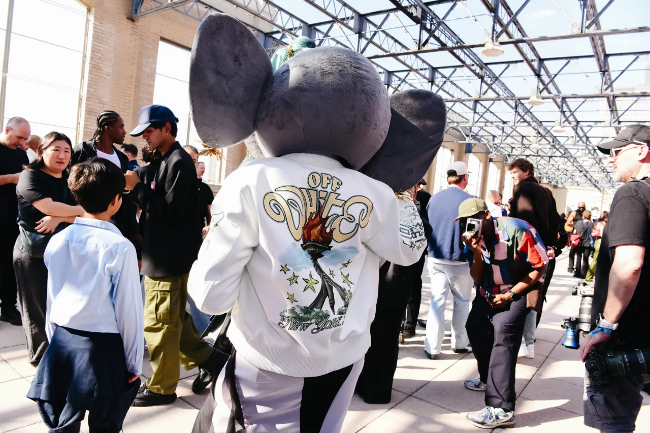 The venue was transformed into a playground of creativity, with local graffiti artists covering the walls in a tribute to the five boroughs. It felt less like a fashion show and more like a cultural event: half art opening, half basketball game.