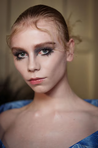 The compact 14-look lineup may not have offered a linear narrative—“other than, literally, the red thread,” as Reed himself quipped—but it was his most colorful outing yet. Periwinkle and cobalt blues rubbed shoulders with burgundy, pastel pink, and flashes of gold. Each look was designed as an individual character, tapping into the Harris Reed pantheon of references: David Bowie swagger, Mick Jagger nonchalance, Victorian drama, and English heritage.