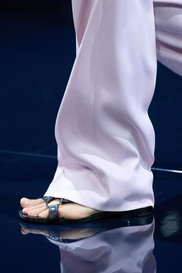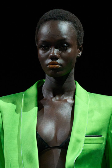 Other looks nodded to fashion’s most scandalous history lessons: Rudi Gernreich’s monokinis and Ackermann’s own Spring 2011 topless dresses, where mere strings held fabric in place or almost did. There was tension in every piece, the push and pull between control and chaos, between seduction and restraint.