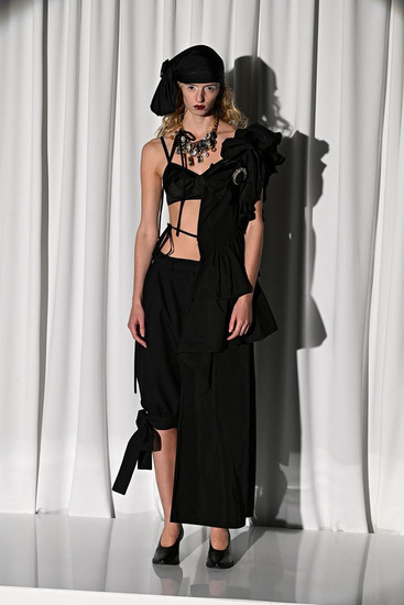 Elsewhere, half-dresses clung to pointy-cup bras and tumbled asymmetrically over track pants or a shaggy faux-fur skirt. It was couture by way of thrift store fantasy, and nobody does that contradiction better than Vaquera.
