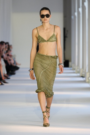 There was a pale nude dress that clung like second skin, managing to look simultaneously casual and like it had survived a tornado. A khaki number cinched and draped with military precision suggested that if the world collapses, at least we will be well draped.