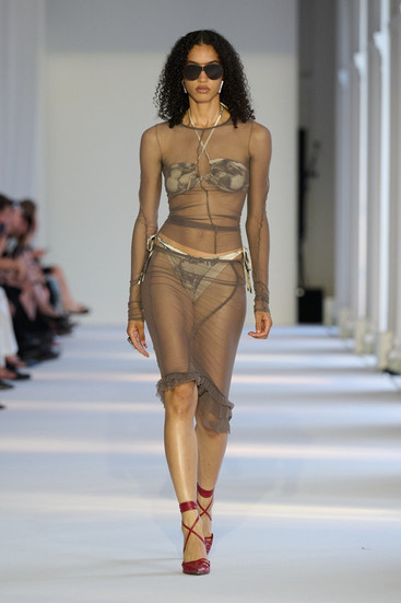The draping is experimental, the fringes absurdly long, the tailoring sharp as ever. Sunglasses dominate the stage as if the sun itself had personally RSVP’d.