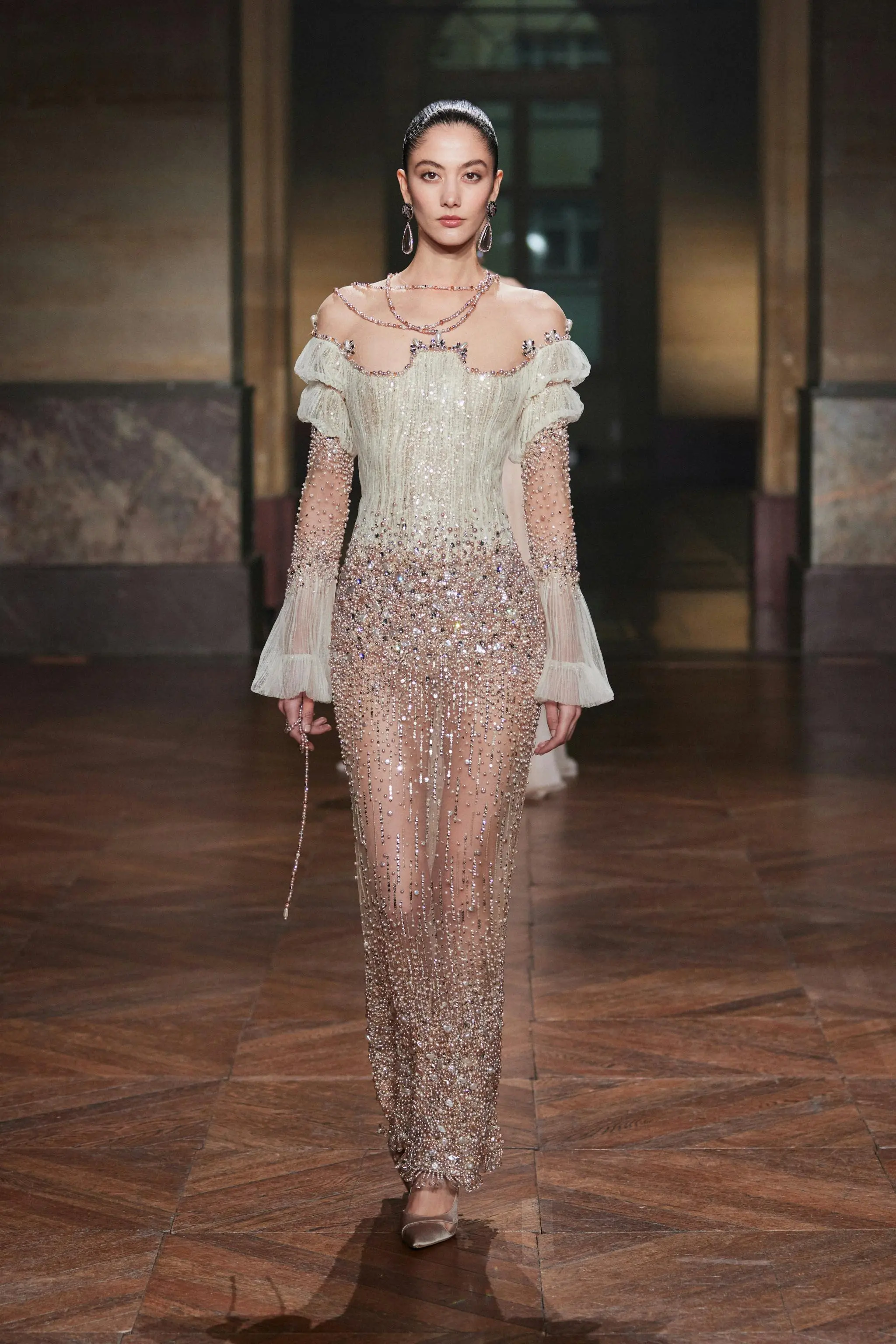 The closing look, an ethereal gown drenched in light-reflecting crystals, was less an outfit than an apparition. As it glided across the runway, the audience was reminded of Hobeika’s ultimate proposition: that fashion, when it remembers its essence, can outshine chaos.