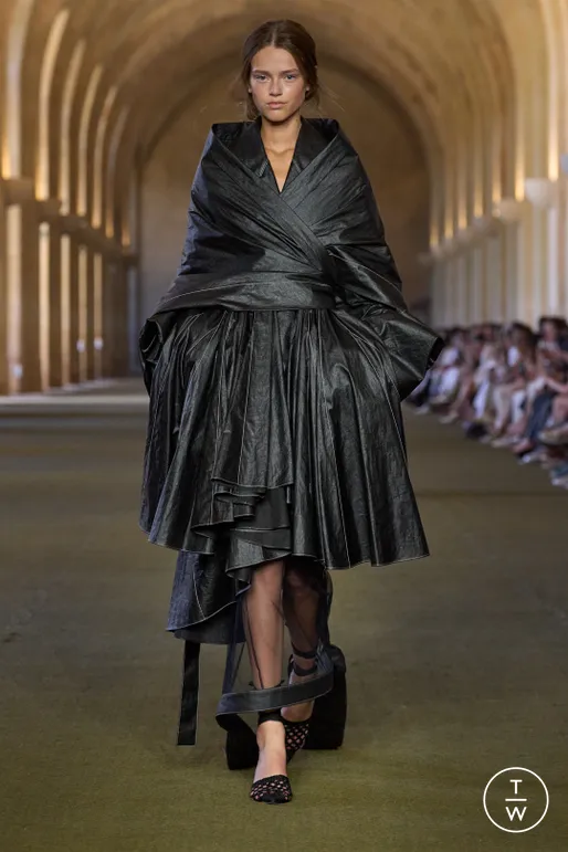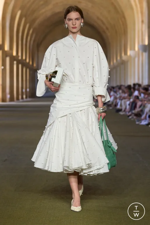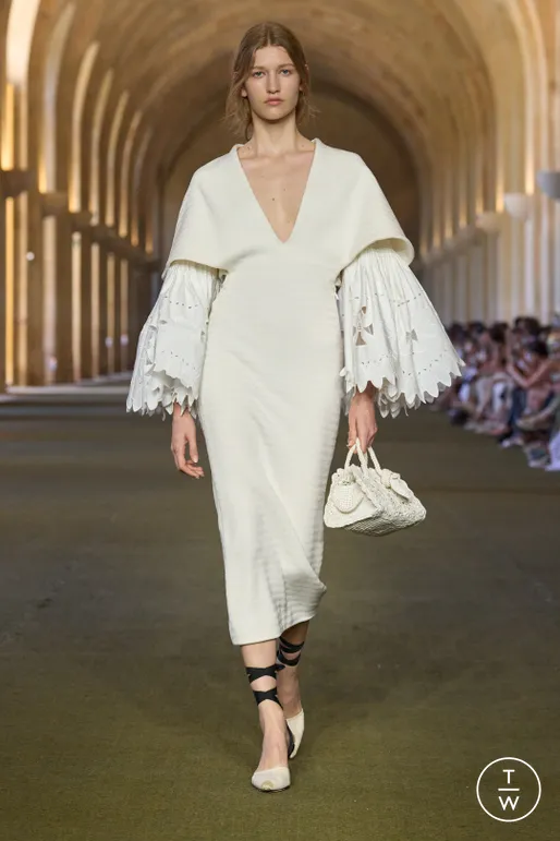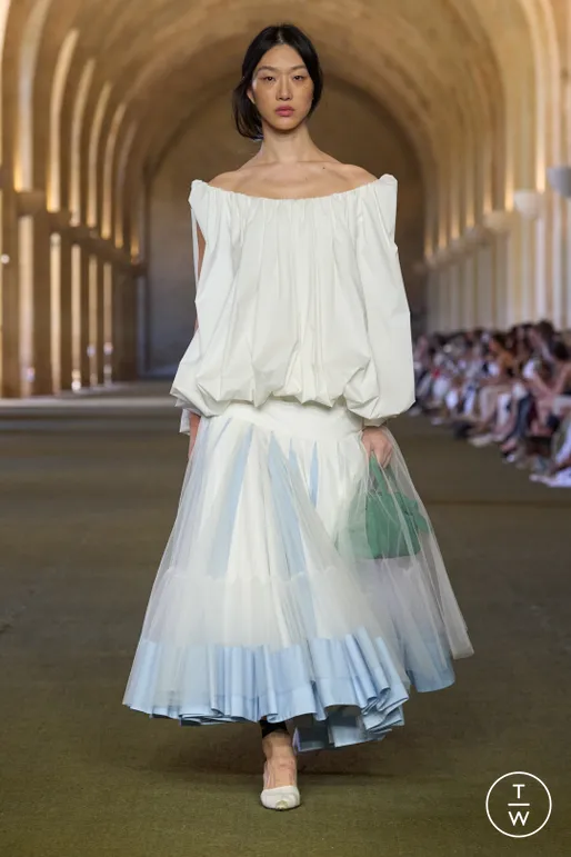 Les silhouettes de la collection combinaient avec maîtrise charme rustique et précision couture. Les modèles ont défilé dans de volumineuses robes blanches évoquant l’innocence de l’enfance, réalisées dans des tissus luxueux tels que le lin, le coton et le cuir italien. Ces pièces, avec leurs broderies délicates et leur drapé raffiné, transformaient des tenues rurales ordinaires en véritables déclarations de haute couture.