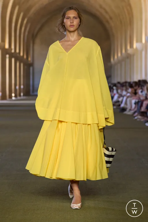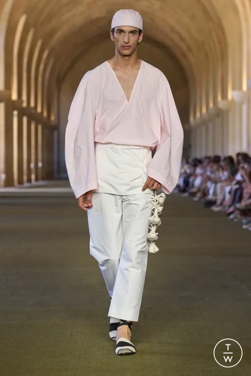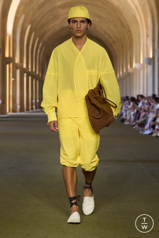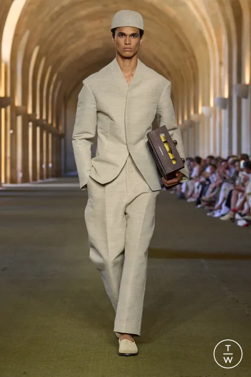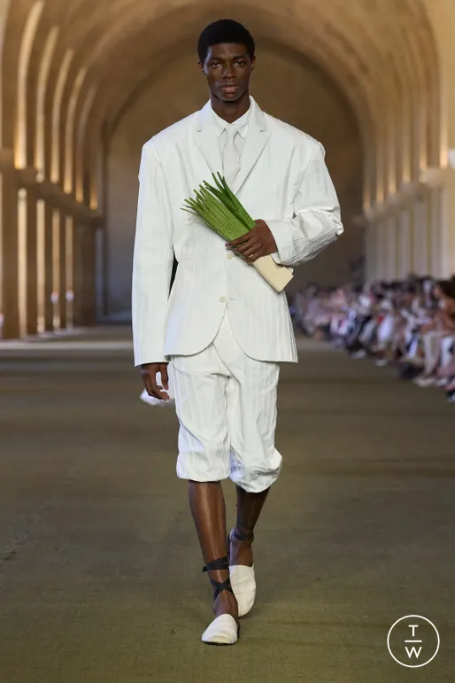 Même les moindres détails, comme des poches exagérées ou des ceintures nouées avec fantaisie, semblent faire un clin d’œil au public, rappelant que la mode, au fond, reste un jeu, et que Jacquemus s’amuse visiblement beaucoup trop pour se soucier des règles.