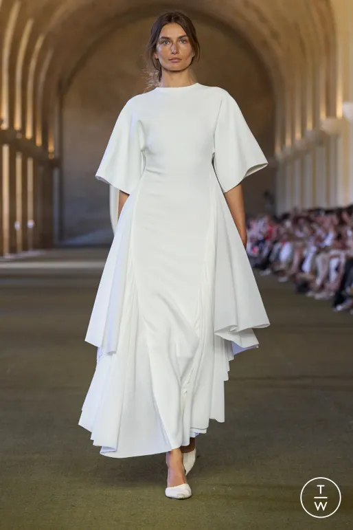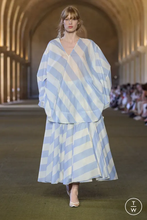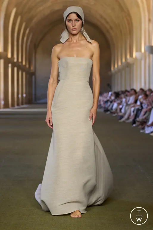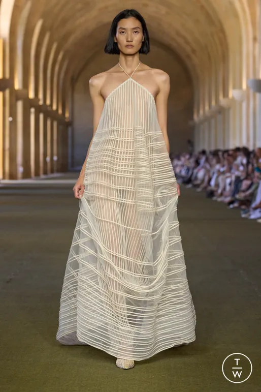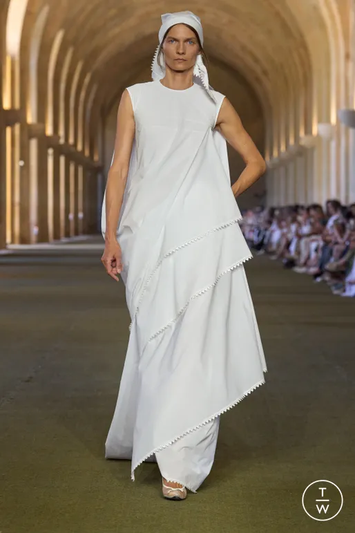 Chaque pièce racontait une histoire, des robes fluides rappelant le linge ancien aux tailleurs structurés mais souples rendant hommage aux vêtements de travail traditionnels. L’utilisation du blanc pur et des tons écru subtils créait une atmosphère sereine, presque éthérée, tandis que quelques touches de couleur apportaient profondeur et intérêt.