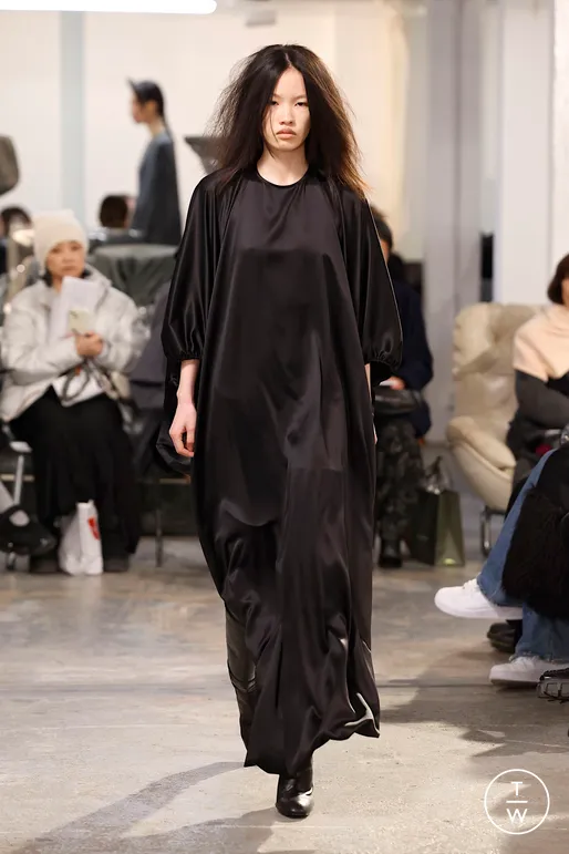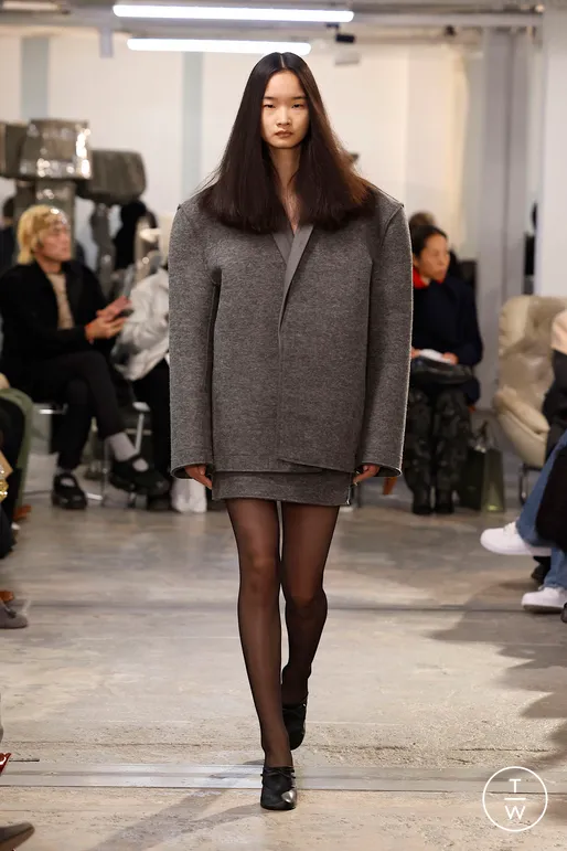 Les manteaux longs de la collection, arrivant jusqu’aux chevilles, sont conçus pour offrir une silhouette audacieuse et marquante. Avec leur forte carrure, ils créent un jeu de volumes qui élargit les épaules, imposant une présence sans égale. Cette année, les détails sont volontairement absents. Aucun bouton, aucune poche ne vient perturber l’harmonie de la coupe. Ce choix minimaliste attire toute l'attention sur la carrure imposante de la pièce, mettant en lumière la silhouette avec une puissance subtile. La couleur dominante, le gris, se décline en plusieurs tonalités qui permettent de composer des looks monochromes qui renforcent la profondeur de chaque ensemble.